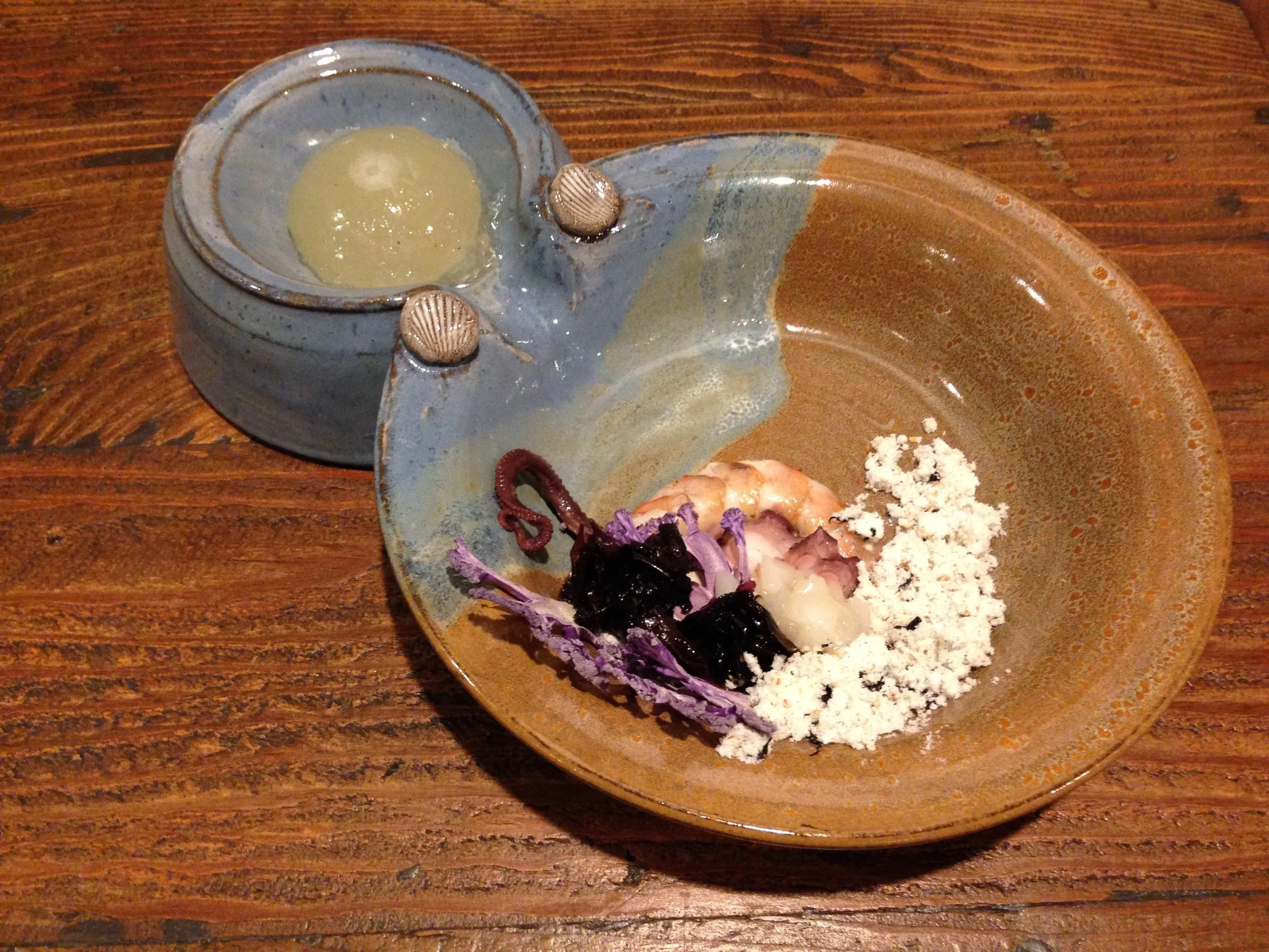 John and David met in 2010 at the Clear Lake Shores Farmers Market. Over the years they have become friends and project collaborators. John has created over half of eculent's surfaces and all of the interesting plating - from the double bowl for the tide pool dish to the pod and leaf pedestal John's creations add to each of eculent's creative courses.