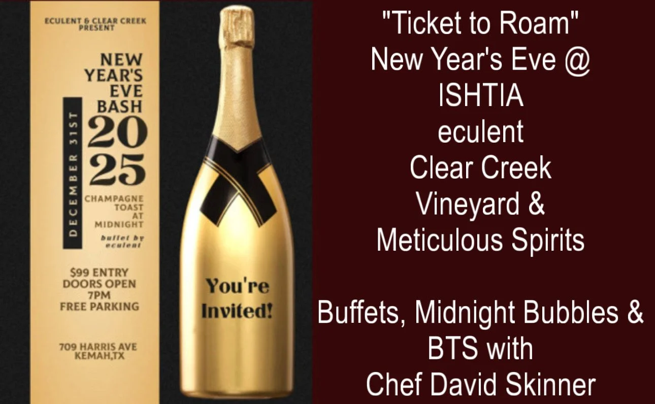 Book your Ticket to Roam” for $99 and sample our buffets at eculent, ISHTIA, Clear Creek Vineyard and Meticulous Spirits Distillery.